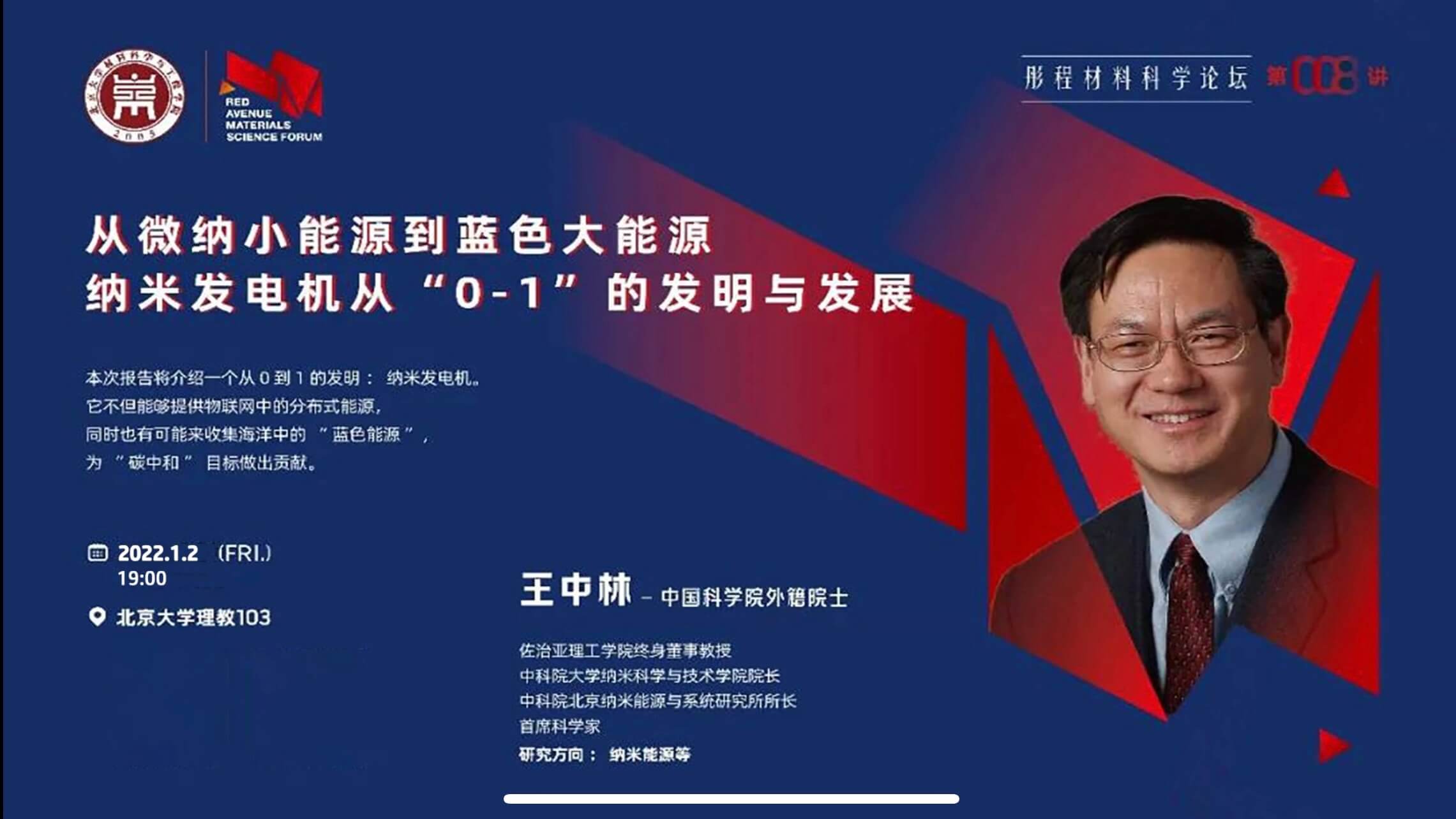 题目:从微纳小能源到蓝色大能源-纳米发电机从“0-1”的发明与发展