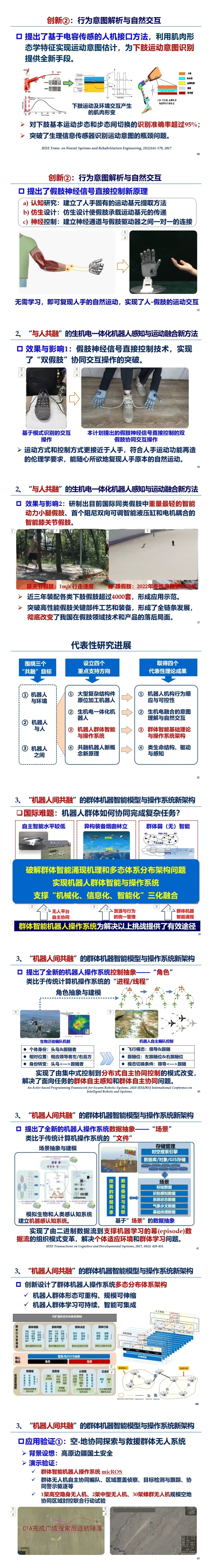 3)机器人群体智能与操作系统架构,包括:机器人个体自主与机器人群体智能涌现机理,群体机器人操作系统的多态分布架构。