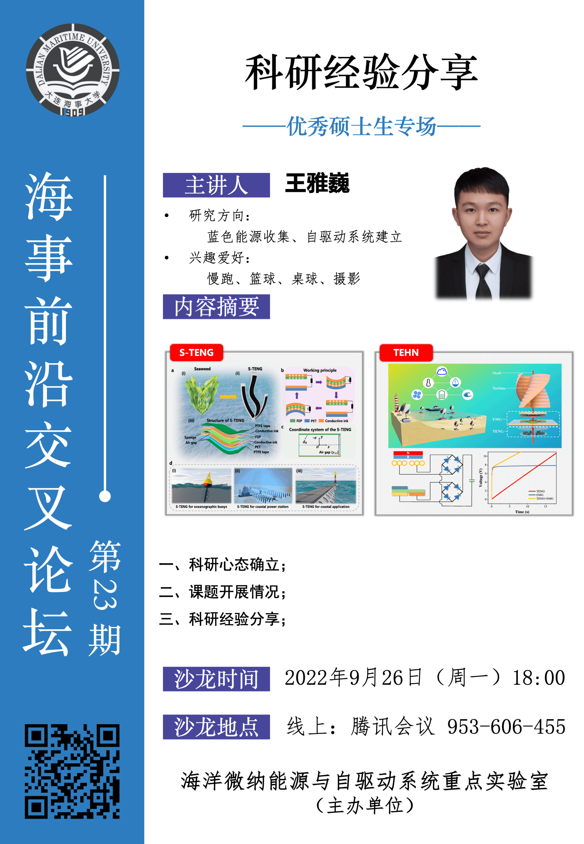 [资源分享] 王雅巍硕士生:科研经验分享|海事前沿交叉论坛第23期--优秀硕士生专场