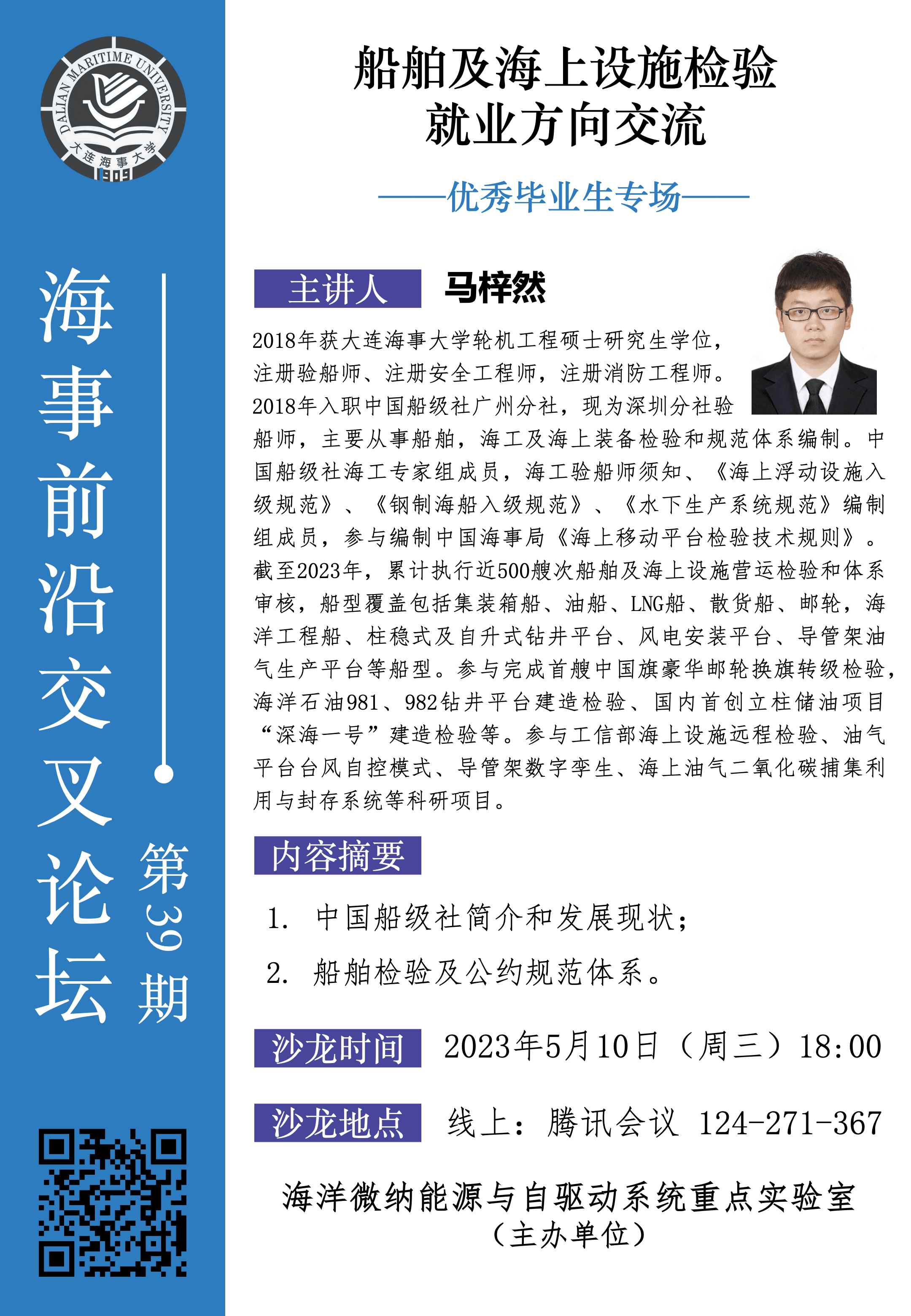 [资源分享] 马梓然毕业生:船舶及海上设施检验就业方向交流|海事前沿交叉论坛第39期--优秀毕业生专场