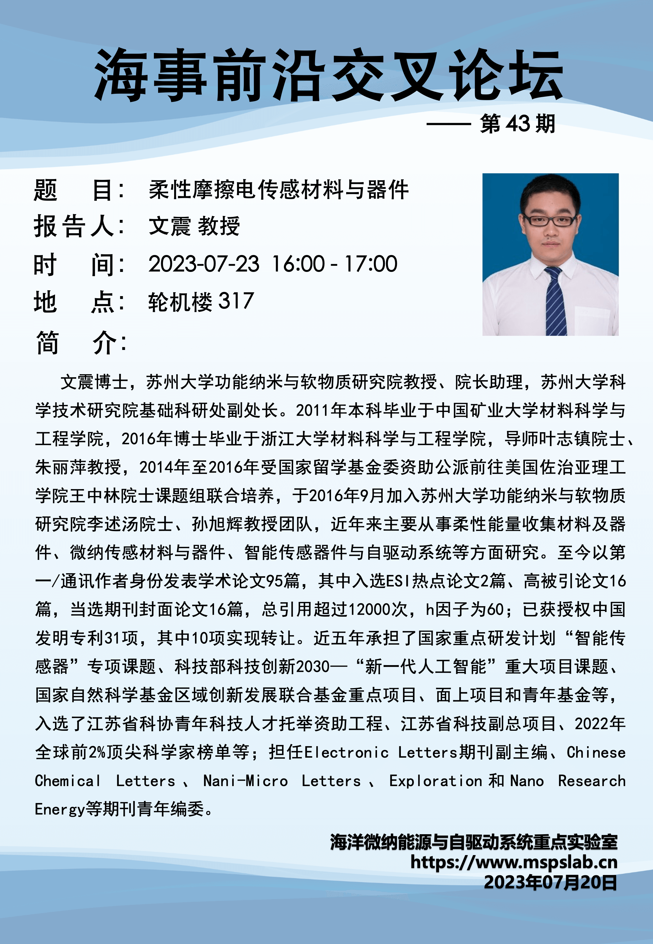 [资源分享] 苏州大学 文震教授:柔性摩擦电传感材料与器件|海事前沿交叉论坛第43期