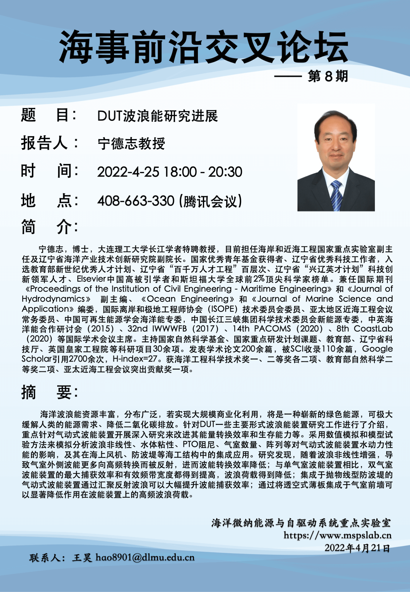 海洋波浪能资源丰富,分布广泛,若实现大规模商业化利用,将是一种崭新的绿色能源,可极大缓解人类的能源需求、降低二氧化碳排放。针对DUT一些主要形式波浪能装置研究工作进行了介绍,重点针对气动式波能装置开展深入研究来改进其能量转换效率和生存能力等。采用数值模拟和模型试验方法来模拟分析波浪非线性、水体粘性、PTO阻尼、气室数量、阵列等对气动式波能装置水动力性能的影响,及其在海上风机、防波堤等海工结构中的集成应用。研究发现,随着波浪非线性增强,导致气室外侧波能更多向高频转换而被反射,进而波能转换效率降低;与单气室波能装置相比,双气室波能装置的最大捕获效率和有效频带宽度都得到提高,波浪荷载得到降低;集成于抛物线型防波堤的气动式波能装置通过汇聚反射波浪可以大幅提升波能捕获效率;通过将透空式薄板集成于气室前墙可以显著降低作用在波能装置上的高频波浪荷载。