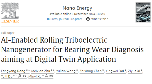 大连海事大学杜太利、徐敏义团队在AI赋能的轴承磨损诊断及数字孪生应用领域取得重要进展Nano Energy