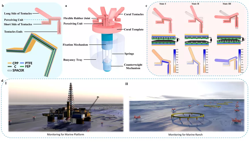 大连海事大学徐敏义教授团队与北京大学谢广明教授团队、南开大学陶金副教授展开合作,提出了一种基于摩擦纳米发电机的仿生自驱动珊瑚结构传感器(BCWS),用于海浪信息感知,为海洋工程建设、海洋资源开发和海洋灾害预警提供实时、准确的海浪信息。