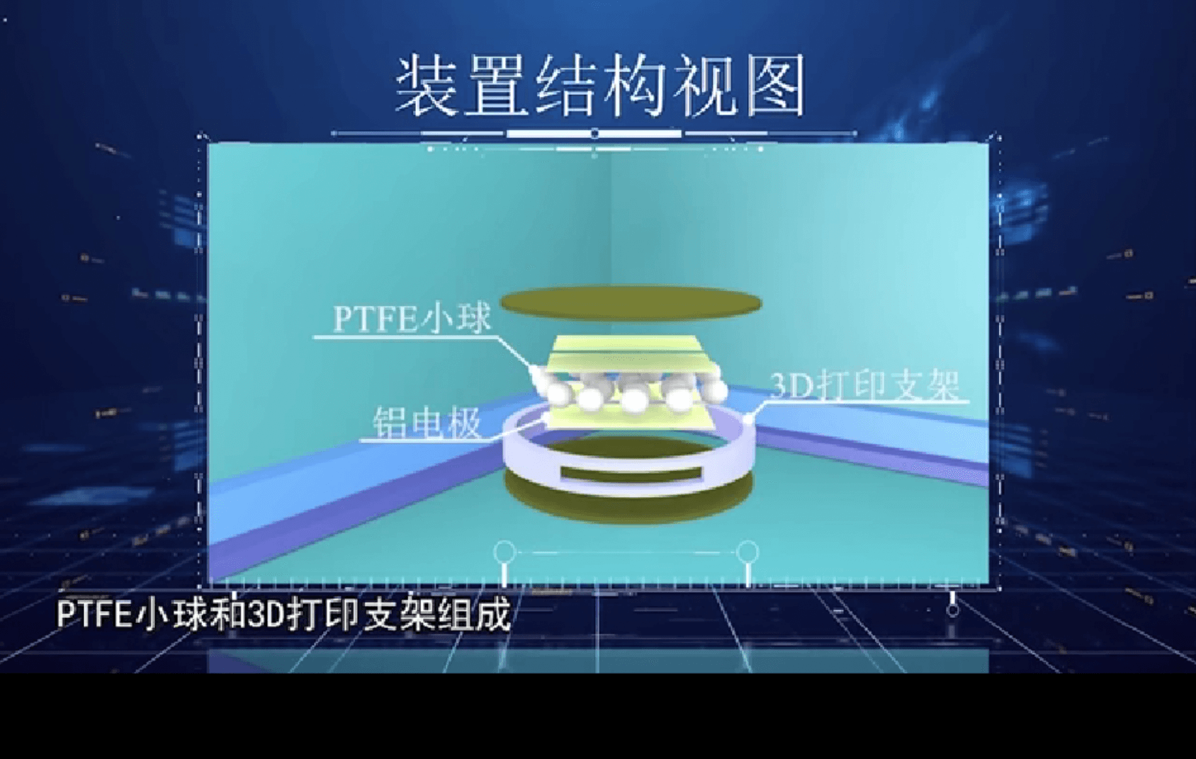 - 波浪能浮标在结构上,由贴在上下电极固定板上的两对铝电极、PTFE(聚四氟乙烯)小球和3D打印支架组成。