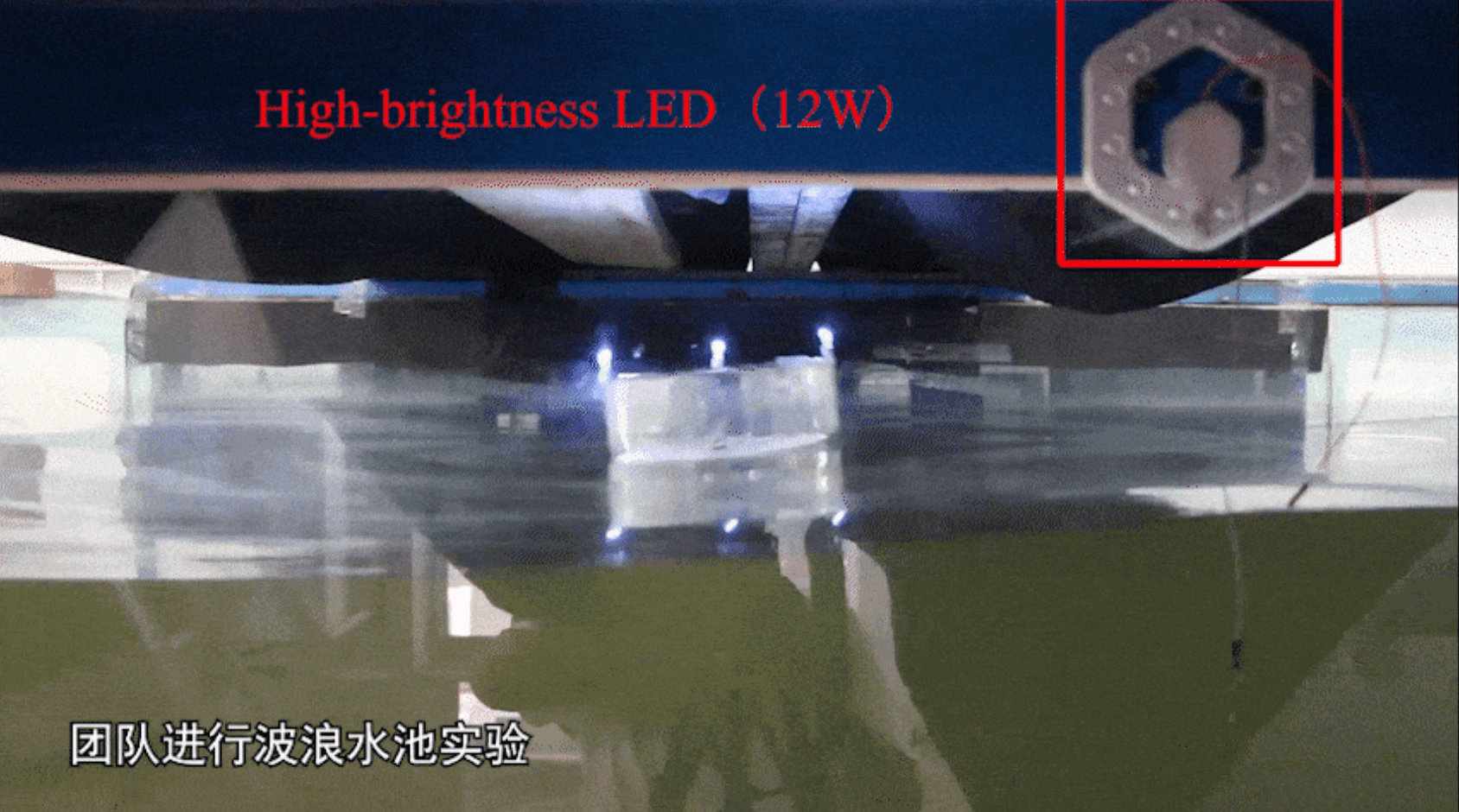 通过对结构的优化处理、相应电路处理技术、蓄能系统等,波浪能浮标就会高效地将机械能转化为电能,实现电流的稳定输出,甚至点亮12W的LED电灯也是小事一桩。