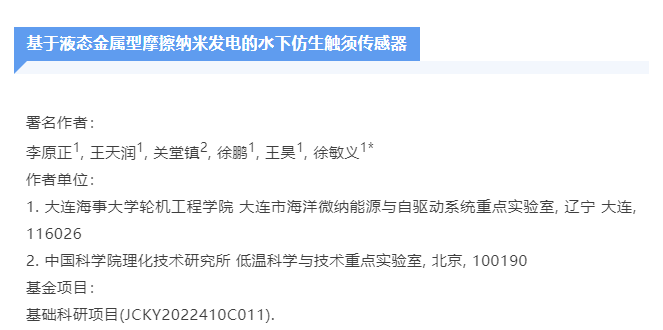 - 受动物触须毛囊结构的启发, 以摩擦纳米发电机传感技术为基础, 引入具有高导电性、流动性和电极自修复特性的液态金属用作摩擦层与电极层, 创新性地提出了基于液态金属的摩擦电仿生触须传感器, 经过实验验证与数据分析, 该传感器可实现对触觉信息的高灵敏度感知, 验证了LTWS的触觉感知能力。得到结论如下: