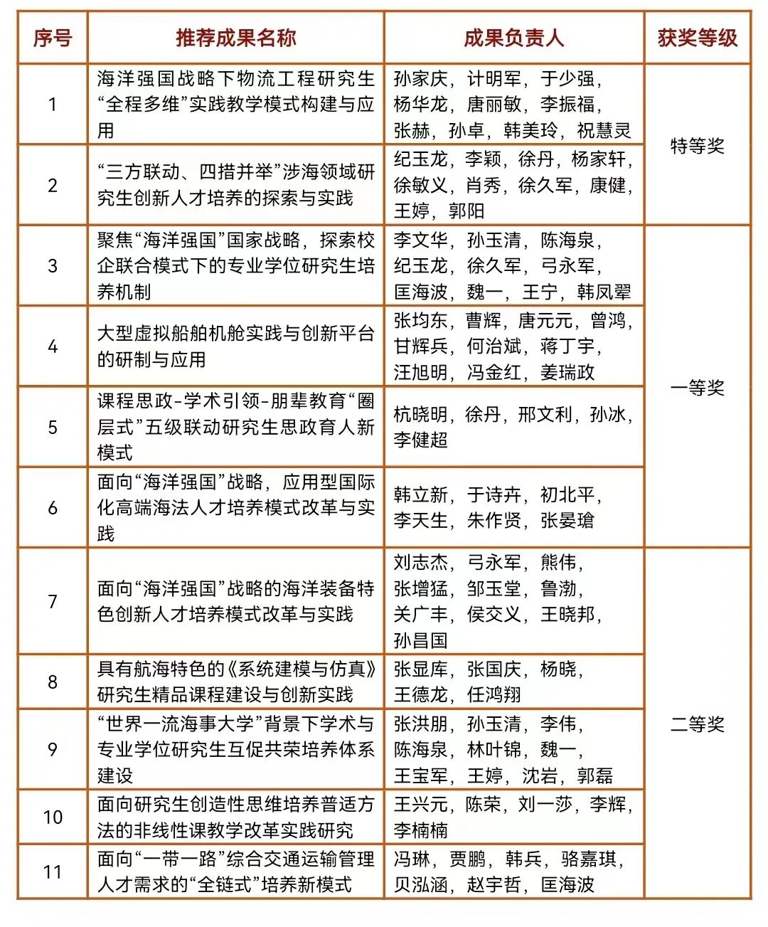 近年来,学校不断深化研究生教育综合改革,深化分类培养,彰显培养特色,凝练育人品牌,人才培养质量稳步提升,研究生教育新局面持续开拓,为建设研究型世界一流海事大学奠定了坚实基础。未来,我校将充分发挥研究生教育教学成果奖的示范引领作用,把先进的研究生培养模式、高效的教学方法、优质的研究生课程应用到高层次人才培养过程中,力争在研究生教育理论研究和教育实践等方面实现更大突破,为服务交通强国、海洋强国建设作出新的更大的贡献。