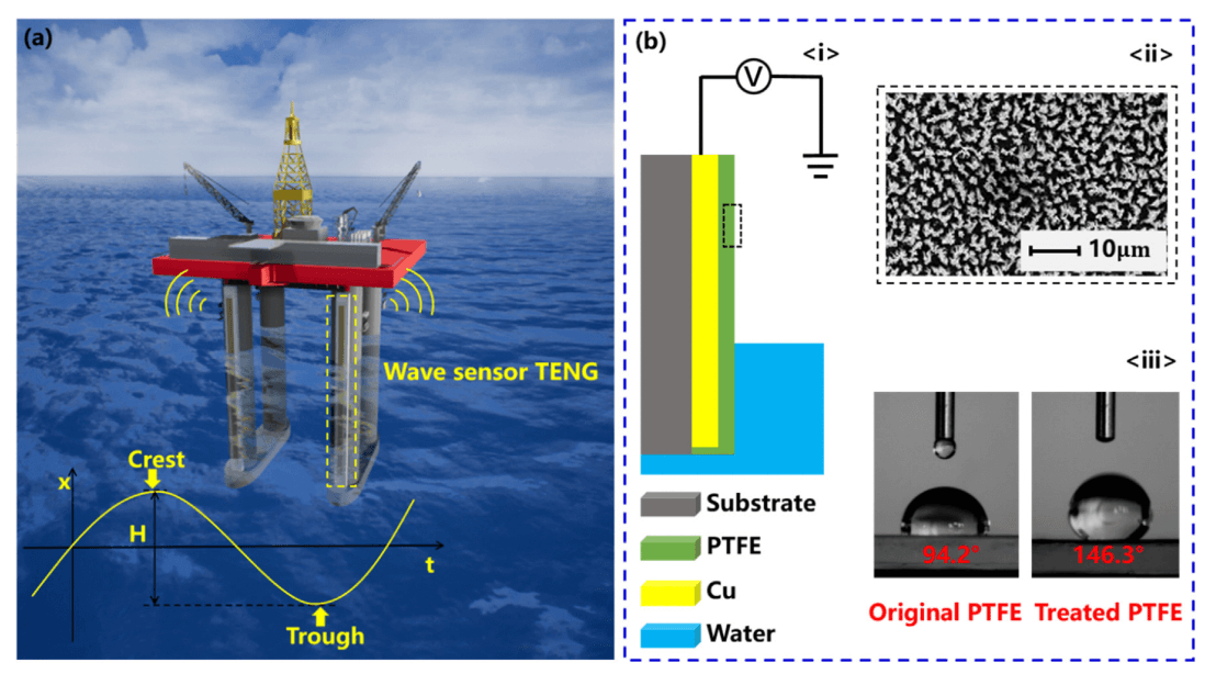 Wave monitoring is essential for marine engineering construction, development and utilization of ocean resources, maritime safety and early warning of marine disasters. In this paper, a highly-sensitive wave sensor based on liquid-solid interfacing triboelectric nanogenerator is proposed and systematically investigated. The wave sensor is made of a copper electrode covered by a poly-tetra-fluoroethylene film with microstructural surface. The effects of substrate, wave height, frequency, and water salinity on the performance of wave sensor are systematically investigated. It is found that the output voltage increases linearly with wave height with a sensitivity of 23.5 mV/mm for the electrode width of 10 mm, implying that the wave sensor could sense the wave height in the millimeter range. The sensitivity could be further increased by widening the electrode and/or enhancing the surface hydrophobicity. In a water wave tank, the wave sensor is successfully used to monitor wave around a simulated offshore platform in real time. Therefore, the novel wave sensor could provide an alternative to monitor wave for smart marine equipment.