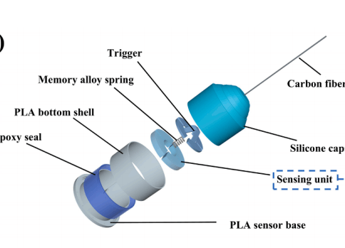 The environmental perception capability of underwater robots is critical for enhancing their operational per-formance and flexibility. Inspired by the biological structure of sea otter whiskers, this paper proposes a novelsensor based on liquid metal-enabled triboelectric nanogenerators, referred to as liquid metal-based triboelectricwhisker sensor (LTWS). The LTWS comprises key components, including carbon fiber tentacde, silicon capsulecover, trigger, memory alloy spring, sensing units, base, etc. The carbon fiber tentacle deflects to varying degreesin response to external forces, driving contact and separation in the corresponding sensing unit, which generateselectrical signals. The LTWS exhibits high sensitivity to whisker displacement changes (7.9 mV/mm) and theoutput signal is basically unaffected by the touch frequency, ensuring the consistency and reliability of the signalunder different operating conditions. In addition, LTWS can also be used for flow velocity measurement andcollision detection in underwater environments, providing underwater robots with extended detection capabil-ities in low visibility and high background noise environments by purely tactile means, providing a novel methodfor ocean data collection.
