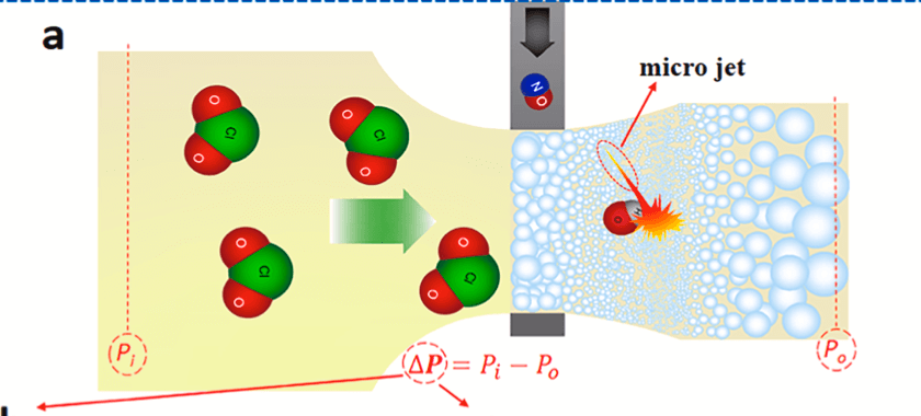 Ships have brought substantial economic benefits, and meanwhile, they release exhaust gases, including plenty of nitrogen oxides (NOx). Increasingly stringent air pollutant emission standards (e.g., MARPOL) for ships have been established at home and abroad to reduce the pollution of NOx. In this paper, a promising technology for removing NOx from ship exhaust by hydrodynamic cavitation (HC) and chlorine dioxide (ClO2) was proposed. The mechanism of HC promoting denitration was discussed. The various influencing factors of the HC enhancing ClO2 circulation denitration, such as the pressure difference () between the inlet and outlet of the HC reactor, solution temperature (10.0 – 55.0 ℃), NO initial concentration (500–1000 ppm), gas flow rate (1.0–1.6 L/min), solution pH (3.00 – 11.00), and ClO2 concentration (0.001–0.100 mmol/L) on denitration effect were studied in the experiments, in which the optimal conditions were established. On the basis of the results of HC enhancing ClO2 circulation denitration, HC enhancing ClO2 non-circulation denitration experiments were carried out. The results showed that the NO and NOx removal efficiencies reached 93% and 90%. We also measured the final anions in solutions after denitration by ion chromatography and discussed the reaction pathways.