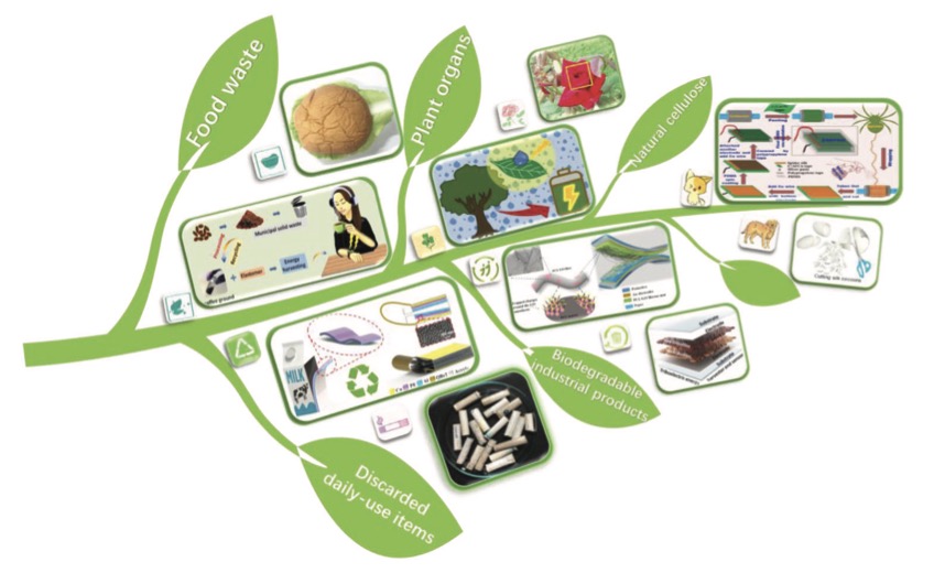 Triboelectric nanogenerator (TENG), an emerging energy conversion technology, offers innovative pathways for energy harvesting and self-powered sensing. To achieve superior performance, researchers commonly employ substantial quantities of original or treated polymers, resulting in high energy and precise sensing. Nevertheless, the sustainable development of TENGs faces significant challenges related to environmental compatibility, pollution hazards, and high production and disposal costs. To address this issue, numerous green materials for diverse TENGs are introduced and advanced. These materials may encompass natural resources, household waste, and recyclable materials, among others. Consequently, a review of the progress in TENGs based on green materials, which can be called green TENGs, becomes imperative to advance its sustainable development. To this end, this work comprehensively elucidates the development of green TENGs from the perspective of materials processing and treatment degree for the first time. Various green TENGs, including food waste, discarded daily-use items, plant organs, biodegradable industrial products, and natural cellulose, are meticulously categorized. This review not only systematically synthesizes the latest research advancements in green TENGs, but also offers insight into their processing methodologies, working characteristics, and potential application scenarios. Finally, it envisions the challenges, proposed solutions, and future research directions for the development of green TENGs.