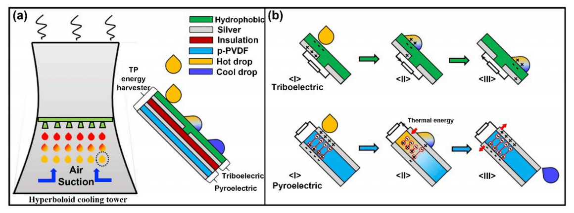 37. A triboelectric and pyroelectric hybrid energy harvester for recovering energy from low-grade waste fluids