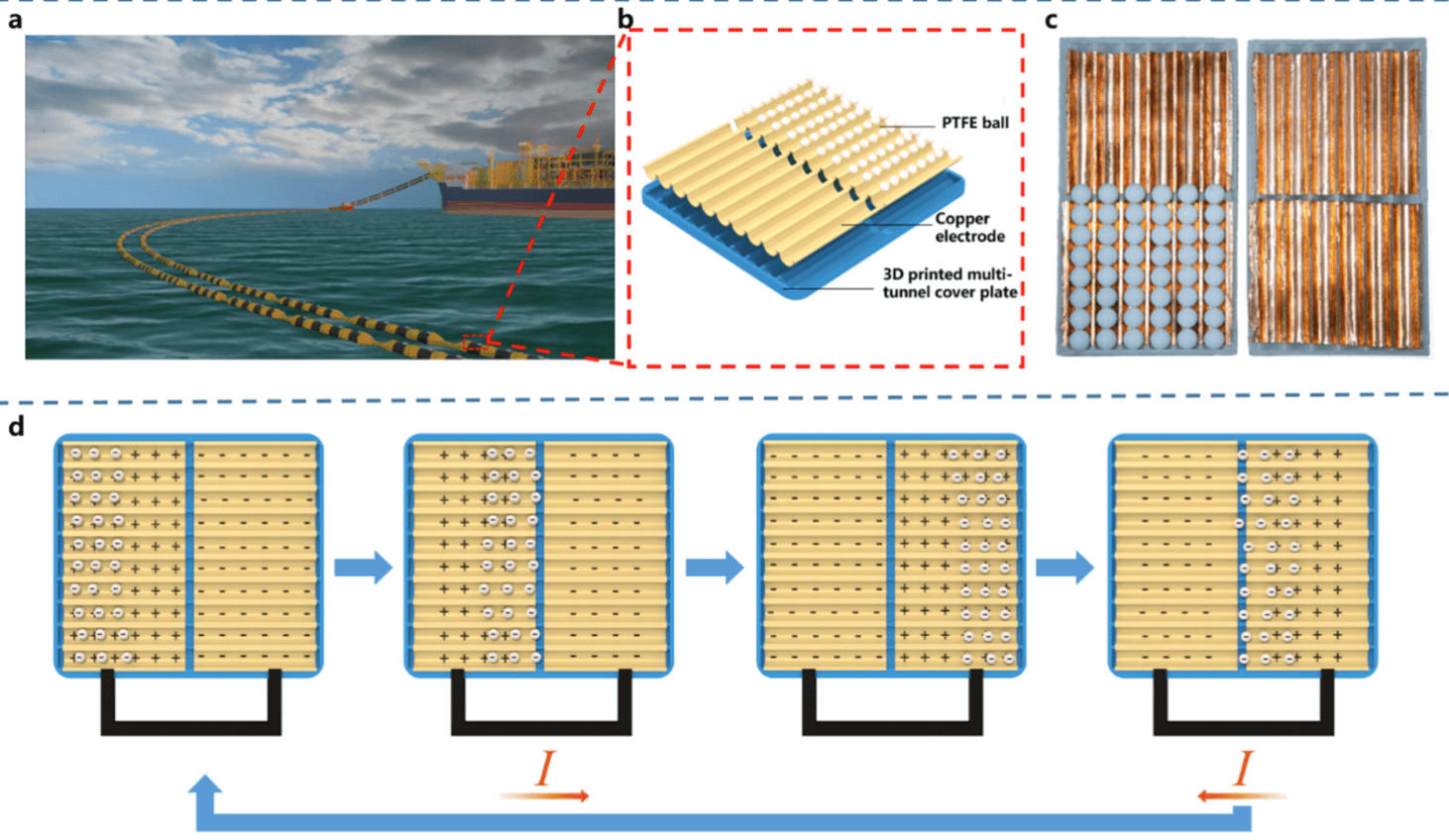 124. A rolling-mode triboelectric nanogenerator with multi-tunnel grating electrodes and opposite-charge-enhancement for wave energy harvesting