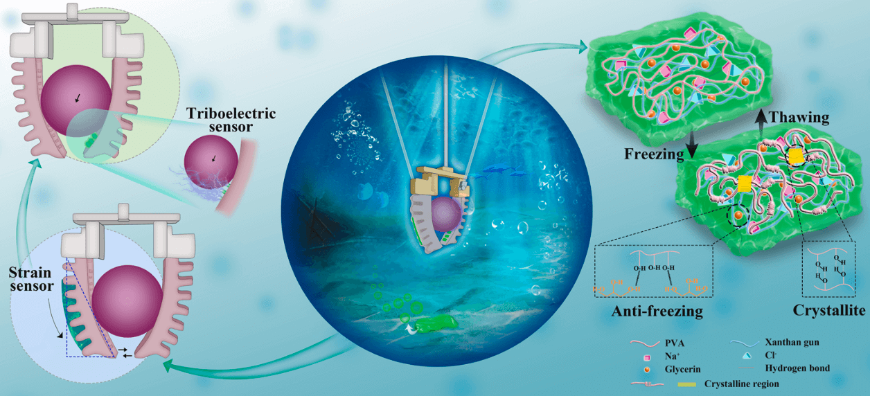 100. All-in-one strain-triboelectric sensors based on environment-friendly ionic hydrogel for wearable sensing and underwater soft robotic grasping