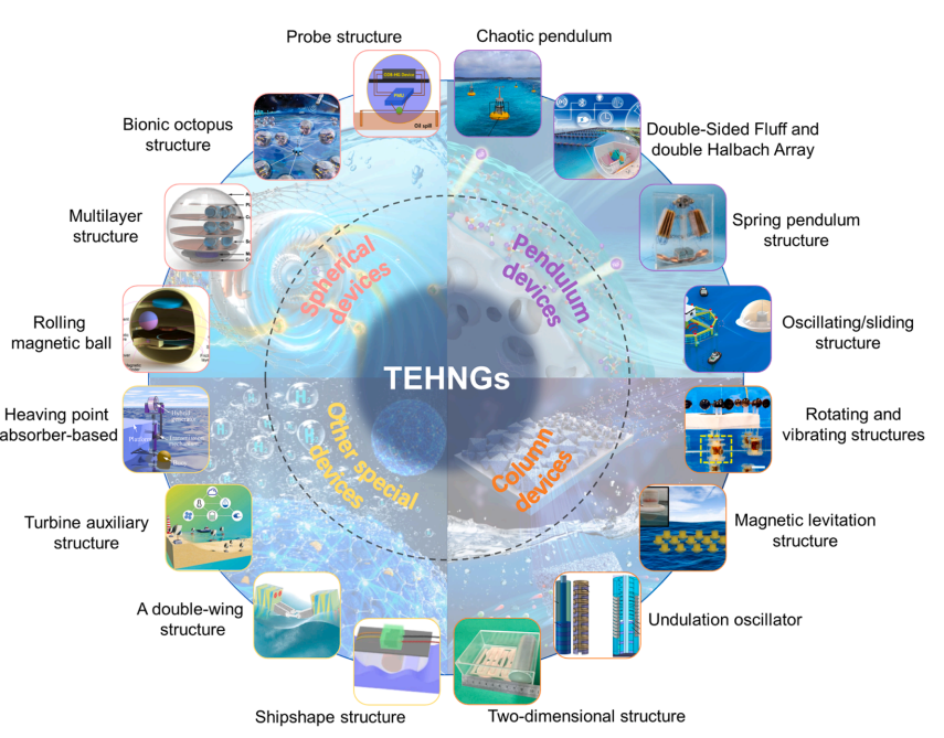 Ocean energy is becoming increasingly important as a promising renewable energy source in modern society. Therefore, how to efficiently harvest ocean energy has attracted extensive research attention. In recent years, hybrid nanogenerators consisting of triboelectric and electromagnetic generators (TEHNGs), which compensate for the deficiency of energy conversion efficiency of single type generator, has been proposed and provided a promising way to harvest ocean energy effectively. Therefore, this review provides a comprehensive and in-depth analysis of TEHNGs from the structural design perspective. The characteristics including structural design, material selection, output performance, etc., of the four types TEHNGS are systematically summarized for the first time. The operating characteristics of TEHNGs with different structures in the ocean are elaborated in detail, as well as the significant influence of structural design on the output power of TEHNGs. In addition, the application scenario, environmental adaptability, and mutual assistance between TENG and EMG are discussed deeply. Finally, the existing challenges and development orientation in the aspects of structure design, materials, power management, durability and stability, and large-scale development, of the TEHNGs are put forward. It is believed that this work will be a significant reference for researchers in relevant field and conducive to the development of the TEHNGs in efficient ocean energy harvesting.