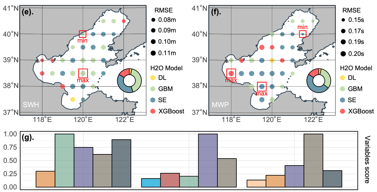 The rational assessment of regional energy distribution provides a scientific basis for the selection and siting of power generation units. This study, which focused on the Bohai Sea, set 31 research coordinate points in the Bohai sea for assessing the potential/trends of wave energy flux (WEF). We applied a point-to-point time series prediction method which modelled the different geographical coordinate points separately. Subsequently, we evaluated the performance of three traditional machine learning methods and three automated machine learning methods. To estimate WEF, the best model was applied to each research coordinate points, respectively. Then, the WEF was calculated and predicted based on the data of MWP, SWH, and water depth. The results indicate that, for all coordinates in the Bohai Sea, the H2O-AutoML algorithm is superior to the other five algorithms. Gradient boosting machine (GBM), extreme gradient boosting (XGBoost), and stacked ensemble models yielded the best performance out of the H2O algorithms. The significant wave height (SWH), the mean wave period (MWP), and the WEF in the Bohai Sea tended to be concentrated in the center of the sea and dispersed in the nearshore areas. In the year 2000, 2010, 2020, and 2030, the maximum annual average WEF at each research coordinate in the Bohai Sea is around 1.5 kW/m, with a higher flux in autumn and winter. In summary, the results provide ocean parameter characterization for the design and deployment of wave energy harvesting devices. Moreover, the automated machine learning introduced herein has potential for use in more applications in ocean engineering.