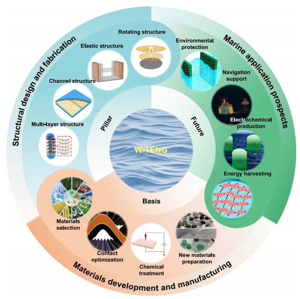 A comprehensive and systematic summary of the research processes for wave-driven triboelectric nanogenerators (W-TENGs) is presented, covering basic materials manufacturing, core structural fabrication, and future marine applications.The methods and paths for iterative upgrade and performance improvement of W-TENGs are pointed out.Analysis and evaluation of the latest applications of W-TENGs in the marine field are performed.Challenges in the current development of W-TENGs and the suggested future directions are elucidated.