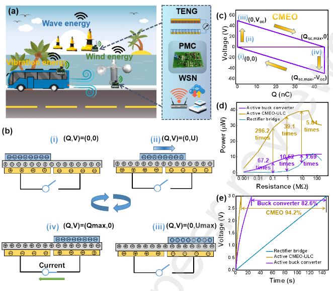 The inherent capacitor characteristic of the triboelectric nanogenerator (TENG) raises a significant challenge in achieving high energy harvesting efficiency. Power management has been treated as one of the most promising way to address this problem. Different from management only by traditional rectifier bridge, passive power management is more in line with the actual scenario of energy harvesting since it can eliminate the dependence on an external power supply. In this work, it introduces an innovative passive power management circuit (PMC) that employs cycles for maximized energy output strategy (CMEO) and unidirectional LC oscillation. Simulation results show that the proposed PMC can shorten the charging time by 88.3%, and increase the effective output power of 1 MΩ by 17.35 times. The influence of semiconductor on the performance of the PMC and the sources of energy loss are revealed by numerical analysis for energy transfer. Furthermore, the relationship between these losses and device selection is investigated through simulation and experiment, which contributes to improving the power management performance and expanding the range of available TENGs. Through optimizing device selection, the fabricated PMC is successfully applied to another 6.7 μW low-output TENG, which exhibits its excellent adaptable potential to various TENGs.